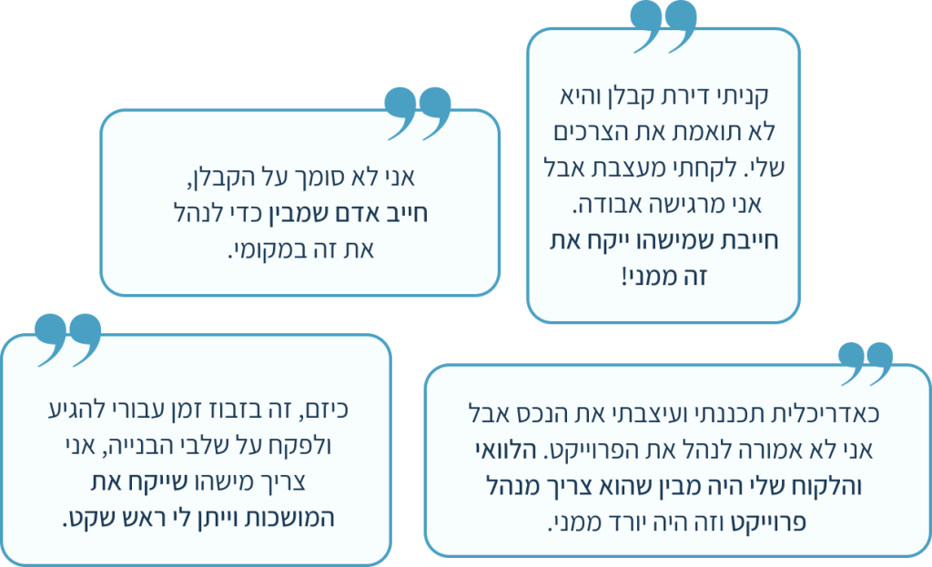 הפוך. כשאתם לוקחים מפקח אתם לא מוציאים כסף. אתם חוסכים כסף. כסף של בלת״מים. כסף כתוצאה מחוסר הבנה בתחום, מניעת ״ניפוח עלויות״ .